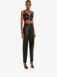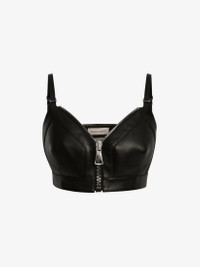 Black leather bra top with silver-finished chunky zip and eyelet detailing. Material:100% Lambskin Product Code:688582Q5AH21000