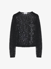 Crew neck top in black devore jersey with an all-over Leopard motif. The top features a crew neck and long sleeves. Product details - Crew neck - Long sleeves - Product code: 807503QDAPG1000 - Made in Italy
