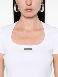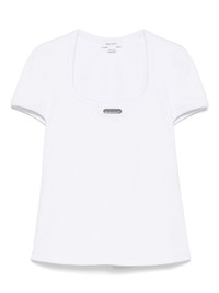 logo-plaque T-shirt Highlights - White - Scoop neck - Short sleeves - Straight hem Made in Italy Composition Cotton 98%, Elastane 2% SIZE & FIT Model measurements Height 5 ft 10 in(1.78 m) Bust/Chest 33.46 in(85 cm) Hips 36.22 in(92 cm) Waist 23.22 in(59 cm) FittingInformation Designed for a close fit throughout Made from a midweight stretch fabric, this piece offers elasticity and flexibility when worn