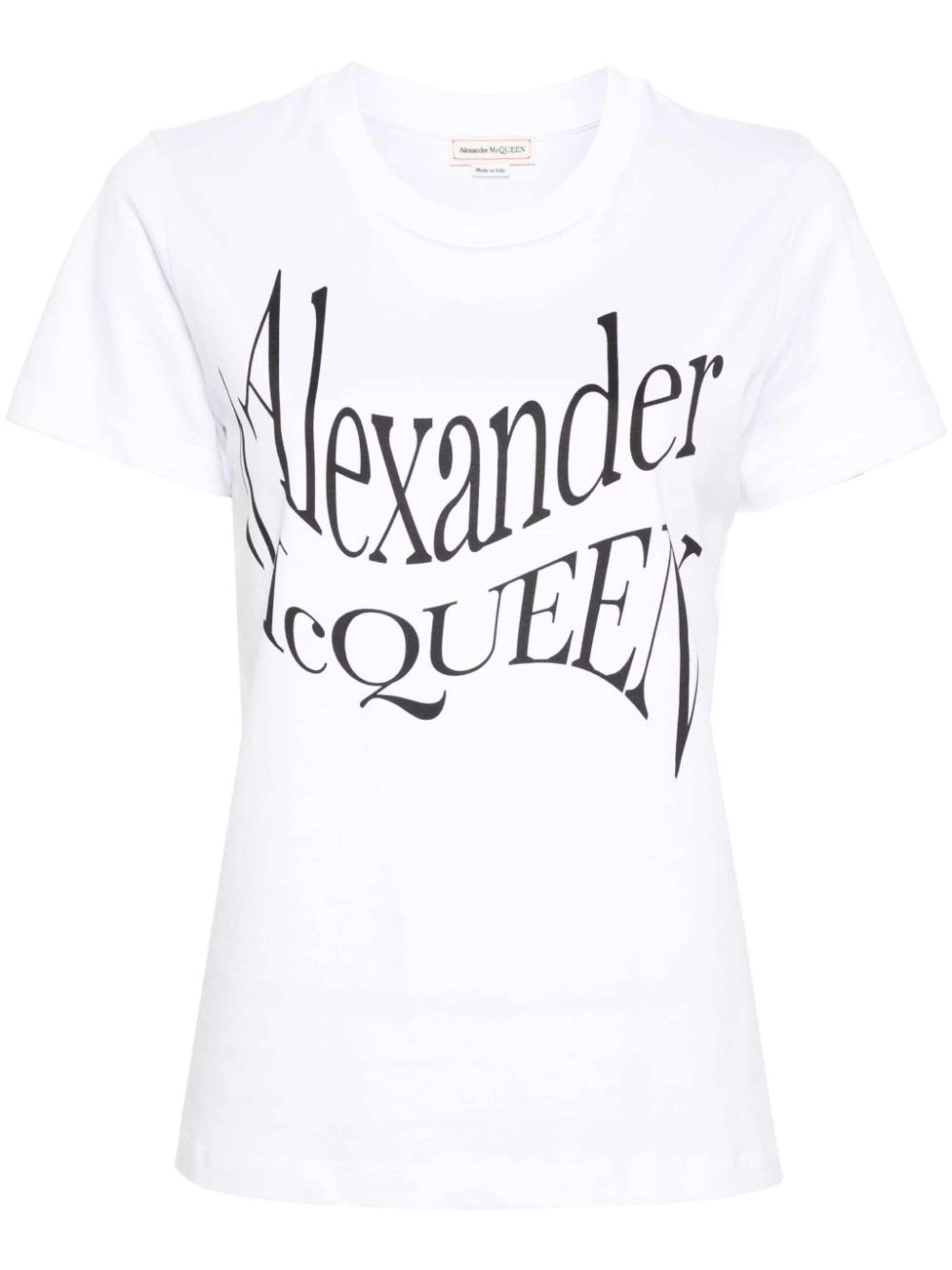 white/black cotton logo print to the front crew neck short sleeves straight hem Size & Fit Model Measurements: Bust: 89cm Height: 180cm Hips: 95cm Waist: 63cm