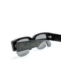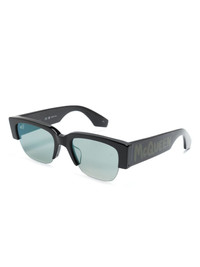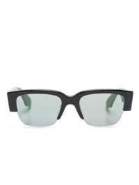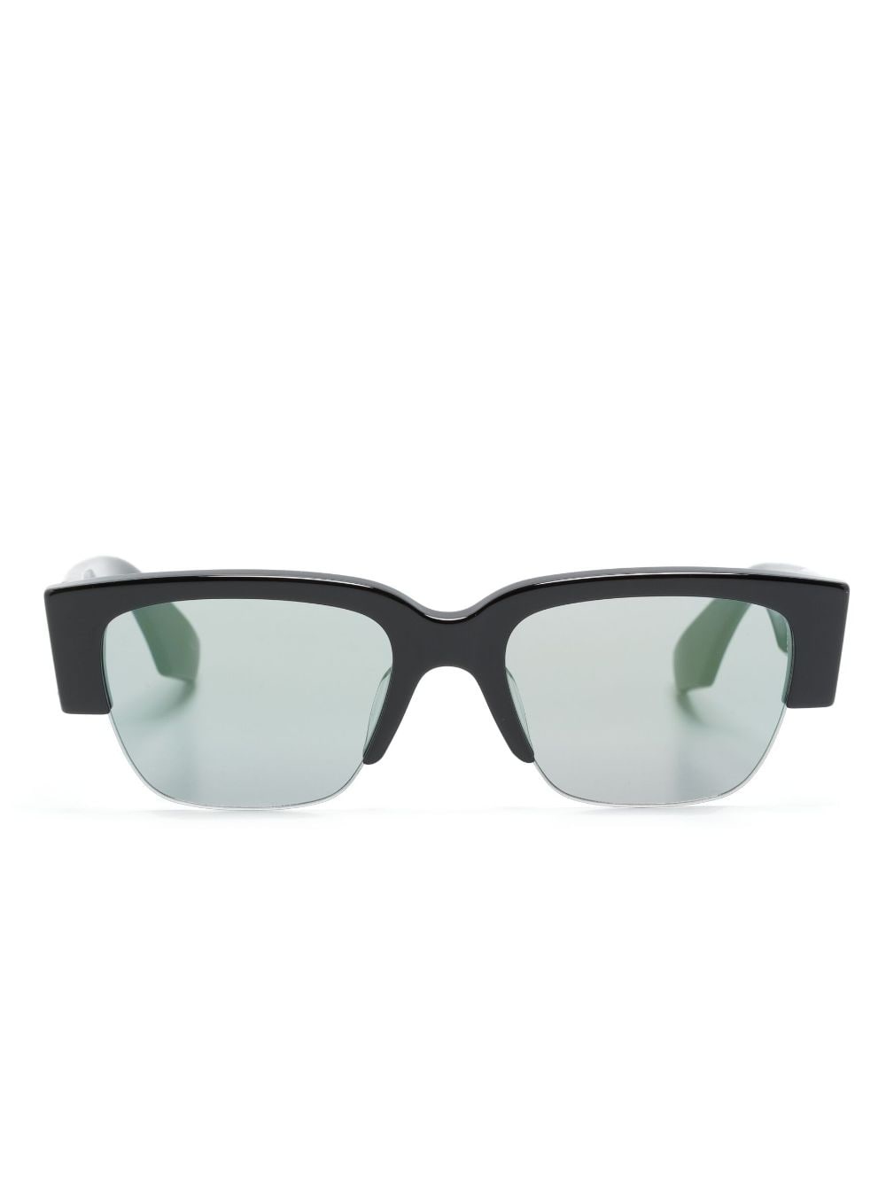 logo-print half-rim sunglasses Highlights - Black - Acetate - Logo print at the arm - Rectangle frame - Half-rim design - Nose pads - Blue tinted lenses - Oversize arms - Curved tips - These glasses come with a protective case. Made in Italy Composition Acetate 100% SIZE & FIT Measurement Arm Length 5.9 in(15 cm) Bridge Width 0.7 in(2 cm) Lens Diameter 2.1 in(5.5 cm) Total Width 5.5 in(14 cm)