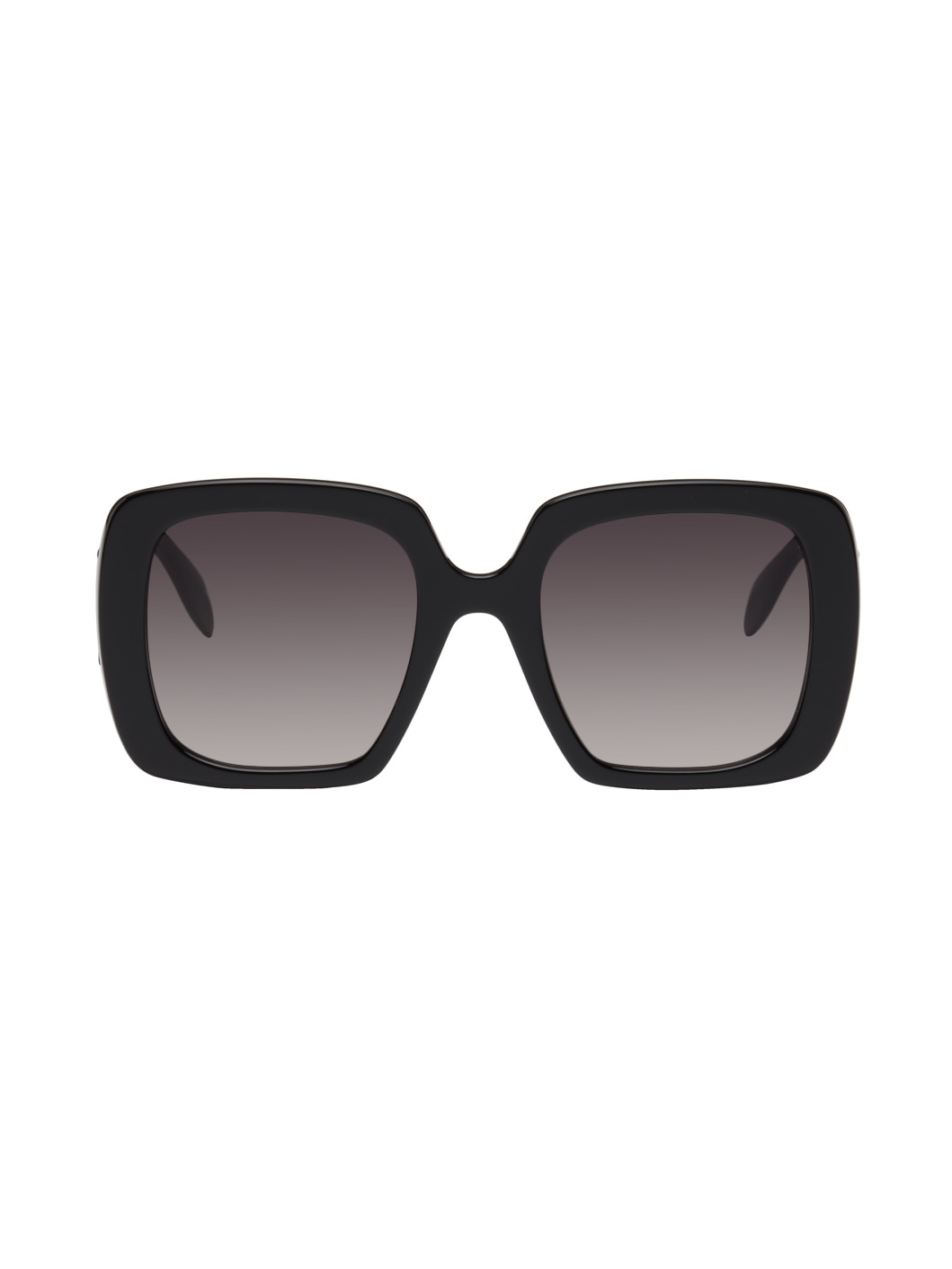 Square acetate-frame sunglasses in black. · Gradient gray lenses · Integrated nose pads · Logo hardware at temples · Hardside case included · Size: 54.22 145 Supplier color: Shiny black Acetate.