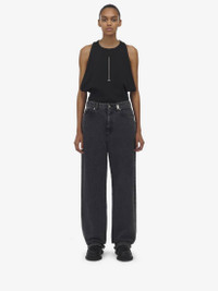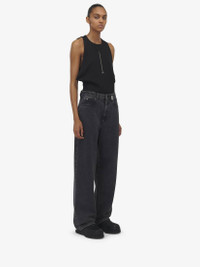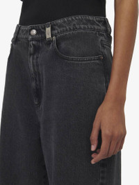 Wide leg jeans. Black stonewashed denim with five-pockets and belt loops with metal signature skull plaque detail. Finished with a button and front zip fastening. Product details - Belt loops with skull plaque - Button and zip fastening - Loose fit - Made with organic cotton yarn - Product code: 802098QMACX1307 - Made in Italy