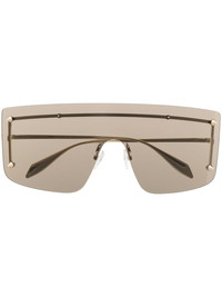 mask-style frame sunglasses Highlights - Gold-tone - Oversized frame - Tinted lenses - Straight arms - Curved tips - These glasses come with a protective case. Made in Italy Composition Metal (Other) 100% SIZE & FIT Measurement Arm Length 5.11 in(13 cm) Bridge Width 0.47 in(1.2 cm) Lens Diameter 2.75 in(7 cm) Total Width 5.7 in(14.5 cm)