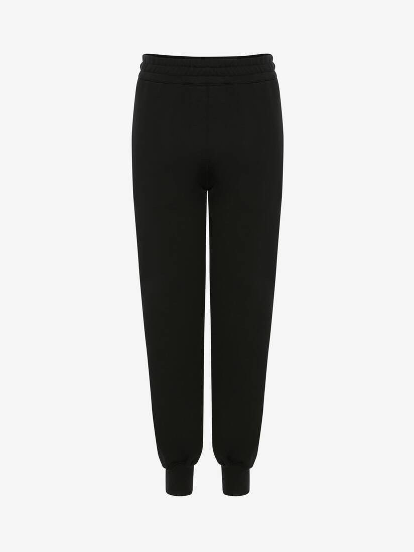 Black cotton jersey joggers detailed with a printed McQueen Graffiti logo on the back pocket. The sweatpants have two side pockets, an elasticated waist and hem. Material: 100% Cotton