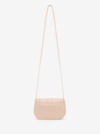 The McQueen Mini T-Bar Satchel – sleek silhouette crafted from blush pink smooth calf leather with bombe leather frames. Antique silver-finished T-Bar on the flap engraved with the McQueen logo. Can be worn crossbody with the adjustable strap. Product details - Dimensions: Length 19 x Height 13 x Depth 5 cm / 7.4 x 5.1 x 1.9 inches - Strap drop at middle hole: 55cm / 21.6 inches - Antique silver-finished T-Bar on the flap - One central compartment with a card slot - Adjustable leather strap - Magnet fastening - Canvas lining - Product code: 8271131MAAD6705 - Made in Italy - Material: 100% Calf Leather