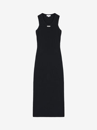 Sleeveless midi dress in black cotton rib. Crew neck and silver metal placket with the engraved McQueen logo. Product details - Crew neck - Made with organic cotton yarn - Product code: 833873QLAER1000 - Made in Italy - Material: 98% Cotton, 2% Elastane