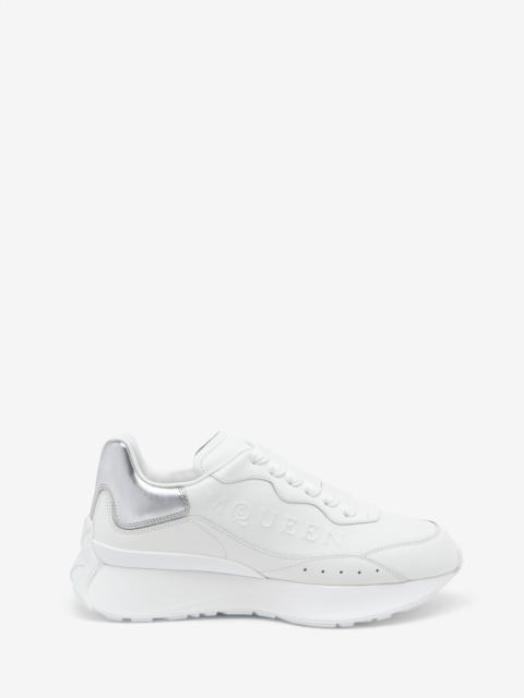 The Sprint Runner—pieced and patched upper silhouette in white leather. High-frequency McQueen logo on the side and tonal heel counter with debossed logo. Finished with a soft rubber sole. Product details - Round toe - McQueen logo - Tonal heel counter - Soft rubber sole - Additional pair of shoelaces included - Product code: 841160WIAHE9007 - Made in ITALY - Material: 100% Calf Leather