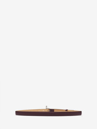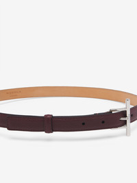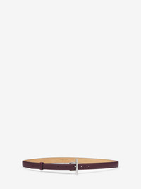 The McQueen T-Bar Hip belt – grainy oxblood calf leather. Finished with a statement T-Bar buckle in silver tone metal engraved with the McQueen logo. Product details - Width: 20mm / 0.7 inches - T-Bar buckle: 50mm / 1.9 inches - Brass hardware with silver tone - Product code: 8153011HB776408 - Made in Italy - Material: Calf Leather