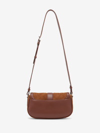 The McQueen T-Bar Satchel – sleek silhouette crafted from dark brown suede and smooth calf leather with bombe leather frames. Antique silver-finished T-Bar on the front leather belt engraved with the McQueen logo. Can be carried on the shoulder or crossbody with the detachable straps. Product details - Dimensions: Length 27 x Height 16 x Depth 7 cm / 10.6 x 6.2 x 2.7 inches - Max strap drop: 55cm / 21.6 inches - Silver-finished T-Bar on the front belt - One central compartment and one open back pocket - Internal zip pocket - 1 detachable and adjustable crossbody - strap + 1 detachable non-adjustable shoulder strap - Magnet fastening - Brass hardware with antique silver finishing - Canvas lining - Product code: 8271111MAAN2050 - Made in Italy - Material: 100% Calf Leather
