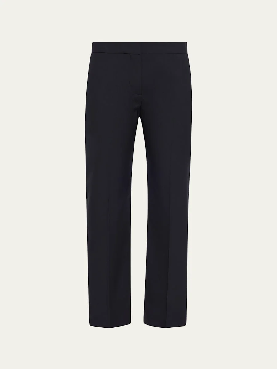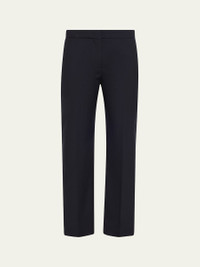 McQueen trousers Mid rise sits high on hip Side slip pockets; back welt pocket Straight legs Cropped fit Hook/zip fly Wool/cotton Dry clean Made in Italy Online Inquiries: BGS21_B9WEM| Store Inquiries: #4987209
