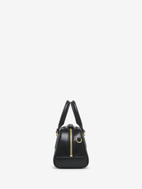 The Mini Birdee Boston Bag – structured bag crafted from black smooth calf leather and framed with leather bombe details. This bag can be worn in multiple ways: carry it in your hand using the handles or wear over the shoulder or across the body using the adjustable leather strap. Product details - Dimensions: Length 21 x Height 13 x Depth 10 cm / 8.2 x 5.1 x 3.9 inches - Strap drop: 48-55 cm / 18.9-21.6 inches - One main compartment with card slot - Detachable and adjustable leather strap - Zip fastening - Brass hardware with shiny gold finishing - Black canvas lining - Product code: 8379131MAAC1000 - Made in Italy - Material: Calf Leather