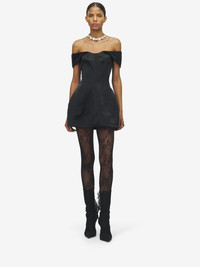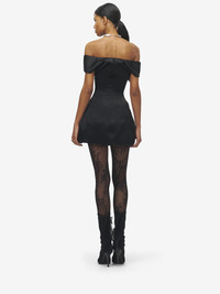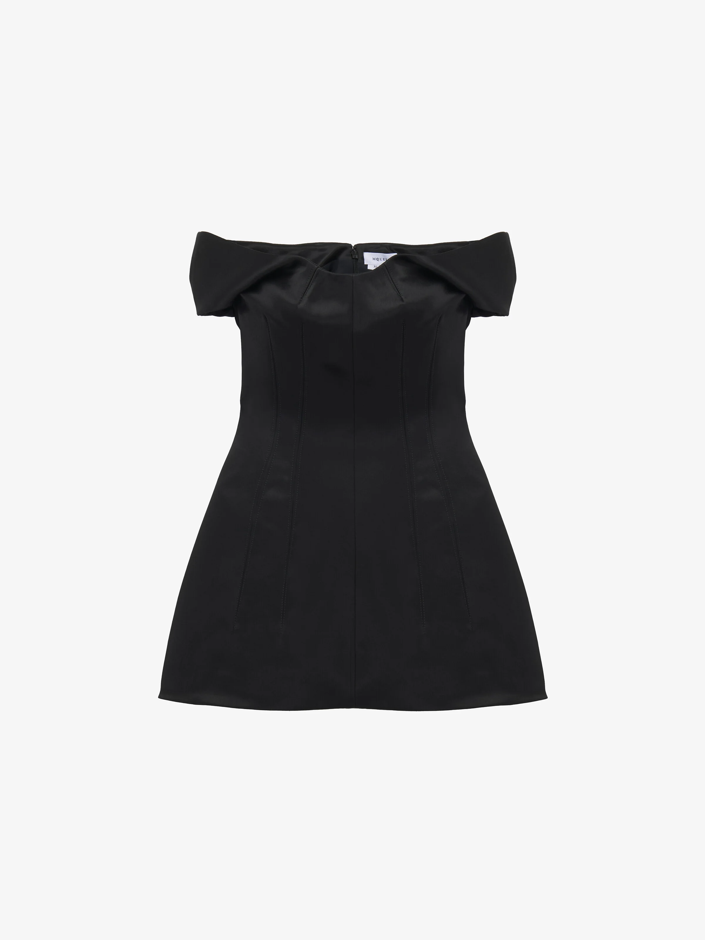 Mini dress in black bonded satin. Scoop neck, sculpted hips and vertical seam detailing. Finished with a back zip fastening. Product details - Scoop neck - Bombe hips - Back zip fastening - Product code: 839956QEAG01000 - Made in ITALY - Material: 100% Acetate