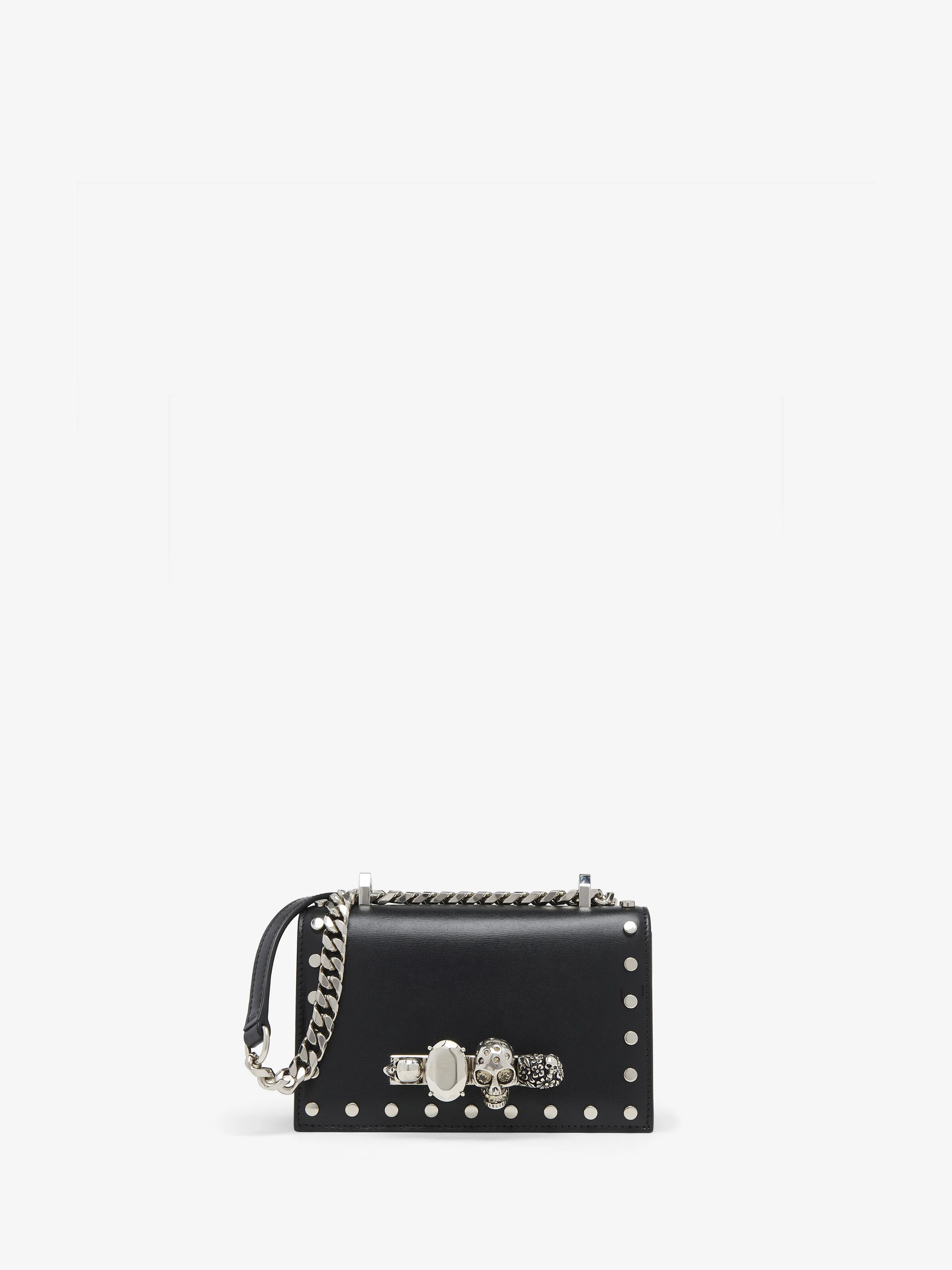 The Mini Jewelled Satchel – smooth black calf leather embellished with silver tone metal flat studs. This bag can be worn in multiple ways: carry it in your hand using the ring handle or by doubling up the strap. Alternatively, wear over the shoulder or across the body using the leather and chain strap. Product details - Dimensions: 17.5 x 9.5 x 4 cm / 6.8 x 3.7 x 1.5 inches - Antique silver four-ring embellishment - One main compartment and one card slot - Adjustable leather and chain strap - Magnet fastening - Brass hardware with antique silver finishing - Suede-effect lining - Can accommodate a smartphone - Due to the appearance of the product, we recommend stowing it in your hold luggage when passing through airport security. For the same reason we recommend not taking the bag to public places, such as law courts and sports stadiums, where there may be security checks - Product code: 65313414C281000 - Made in Italy - Material: Calf Leather