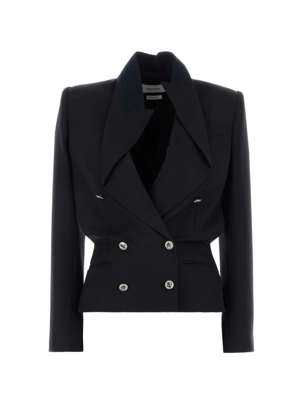 notched wool blazer Highlights - Navy blue - Button fastening - Notched lapels - Flap pockets - Buttoned cuffs Made in Italy Composition Wool 100% Washing instructions Read Manufacturer Guidelines