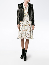 Obsession print shirt dress White and multicolour silk Obsession print shirt dress from Alexander McQueen featuring a notched collar, a v-neck, short sleeves, a front button fastening, a fitted waist, a flared style, a godet hem and a mid-length. Made in Italy Composition Lining: Silk 100% Outer: Viscose 100% SIZE & FIT Model measurements Height 5 ft 9 in(1.75 m) Bust/Chest 32.67 in(83 cm) Hips 36.22 in(92 cm) Waist 24.8 in(63 cm) Washing instructions Dry Clean Only