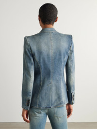 Alexander McQueen's blazer is made from denim that's faded for a lived-in look. It has sharp pointed shoulders, strategically placed seams and V-shaped paneled sides that create a flattering hourglass shape. Wear yours with tonal jeans. Size & Fit - Fits true to size, take your normal size - Intended for a slightly loose fit - Mid-weight, non-stretchy denim - Model is 180cm/ 5'11" and is wearing an IT 40 Model measurements: - Bust: 85cm/ 33.5" - Waist: 62cm/ 24.5" - Hip: 88cm/ 34.5" Details & Care - Mid-blue denim - Button fastening at front - 98% cotton, 2% elastane - Dry clean