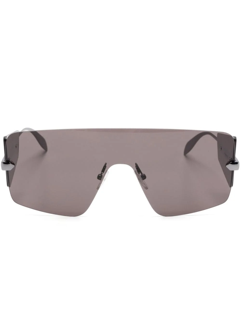 oversize shield-frame sunglasses Highlights - Black - Acetate - Shield frame - Nose pads - Grey tinted lenses - Sculpted arms with engraved logo - Curved tips - These glasses come with a protective case. Made in Italy Composition Acetate 100% SIZE & FIT Measurement Arm Length 5.7 in(14.5 cm) Bridge Width 0.39 in(1 cm) Lens Diameter 3.89 in(9.9 cm) Total Width 5.82 in(14.8 cm)