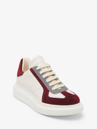 The Oversized Sneaker - Statement silhouette in off-white and grey leather and suede, with retro-inspired detailing and contrast heel counter. Finished with a chunky rubber sole and McQueen logo. Product details - Round toe - Alexander McQueen logo - Contrasting heel counter - Oversized rubber sole - Additional pair of shoelaces included - Product code: 808180WIAC39093 - Made in Italy - Material: Calf Leather