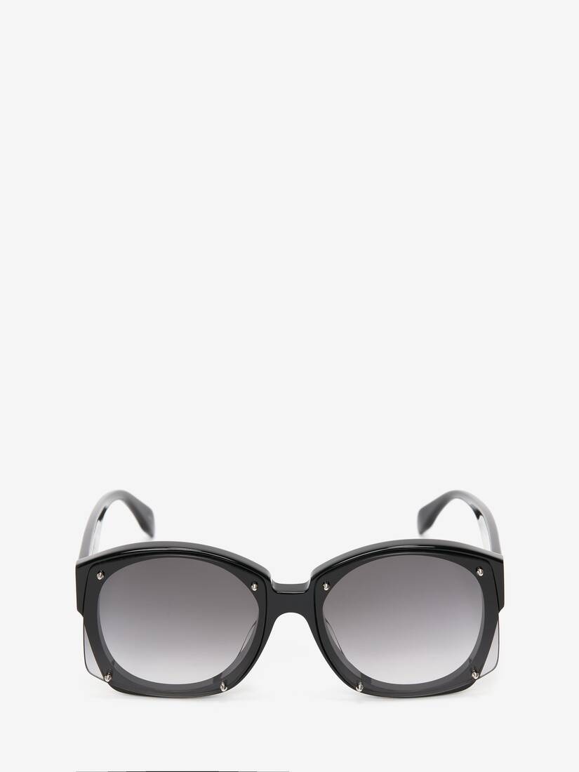 Oversized square acetate sunglasses in black featuring gradient grey lenses enriched with silver stud detailing. The sunglasses have bold acetate temples with a lasered Alexander McQueen signature. All Alexander McQueen Eyewear is 100% certified UV protective (UVA and UVB rays). Material:100% Acetate Product Code:669314J07401053