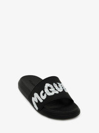 Black rubber slide featuring white McQueen Graffiti logo print and finished with a round toe silhouette. Material:100% Thermoplastic Polyurethane Product Code:686931W4QS31070