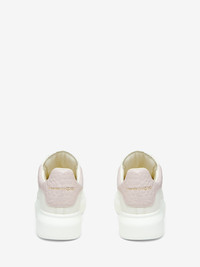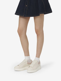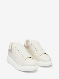The Oversized Sneaker – statement silhouette in off white grainy leather, with a soft pink heel counter featuring the McQueen signature. Finished with a chunky rubber sole. Product details - Round toe - McQueen signature - Contrasting heel counter - Oversized rubber sole - Additional pair of shoelaces included - Product code: 808173WHAEG9184 - Made in ITALY - Material: Shearling