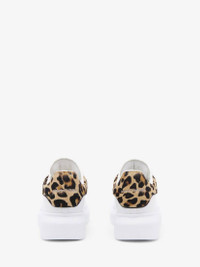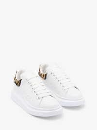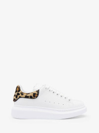Oversized sneakers in white calfskin with a Leopard print calf-hair leather heel counter. This model is enhanced with the Alexander McQueen signature and a thick rubber sole. Product details - Round toe - Alexander McQueen signature - Calf hair heel counter - Oversized rubber sole - Additional pair of shoelaces included - Product code: 718139WIFTI9316 - Made in Italy