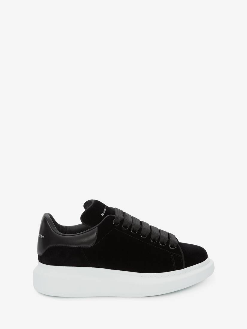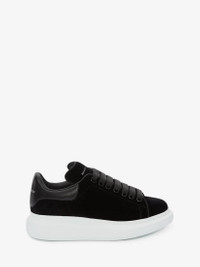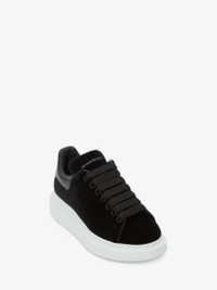 Soft black velvet lace up sneaker with rounded toe and smooth black calf leather heel detail. Large flat laces with Alexander McQueen signature on tongue and heel counter. Oversized rubber sole. To lessen our environmental impact and to reduce cotton consumption, we will no longer be providing a dust bag with our sneakers. Material:100% Cotton Product Code:553775W4FKT1000