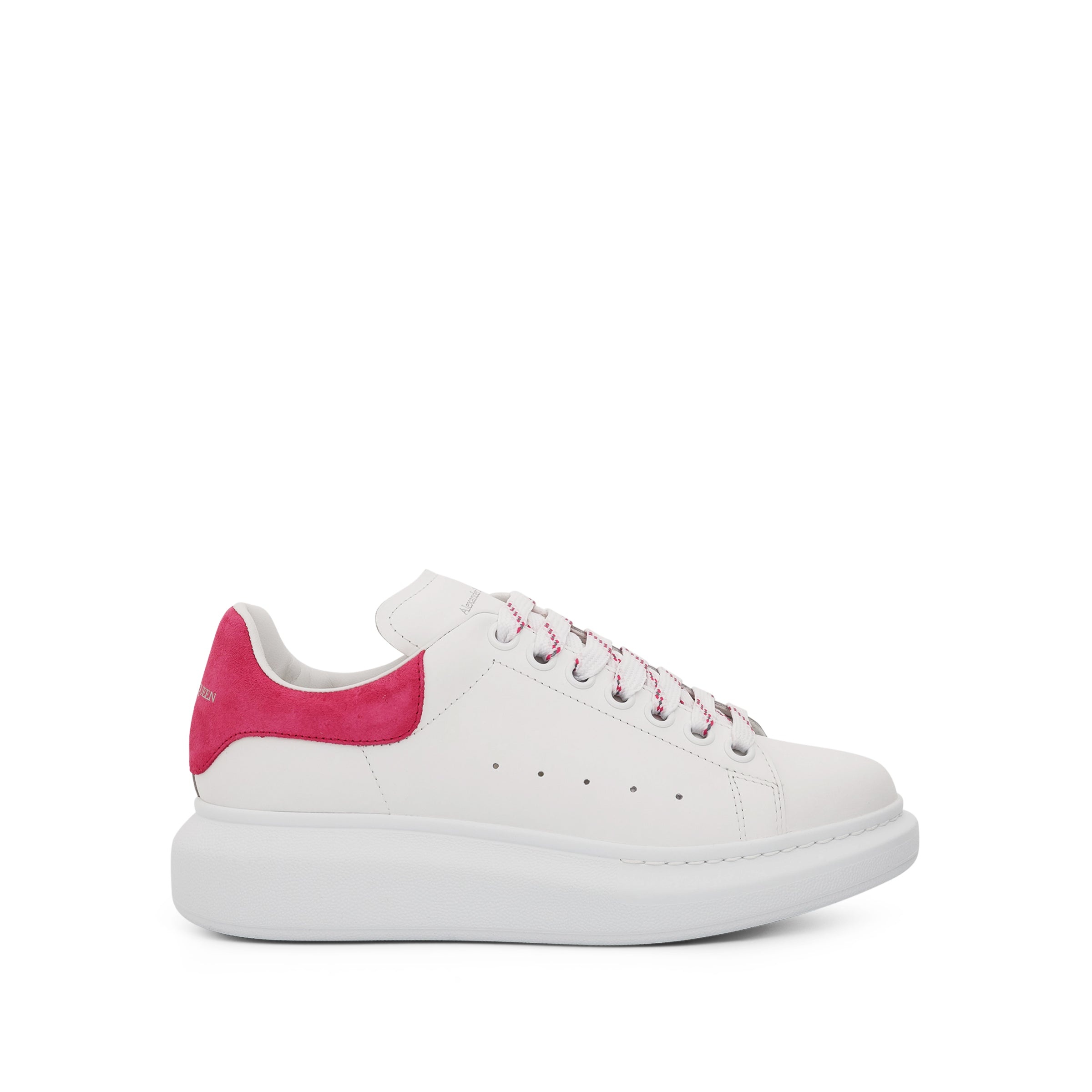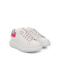 Alexander McQueen lace-up flatform sneakers in calf leather •Composition Outer: Calf Leather 100% Lining: Calf Leather 100% Sole: Rubber 100% •White/Pink •Logo-print tongue •Contrasting branded heel counter •Round toe •Front lace-up fastening •Flatform sole SKU: 718139WIBN28844