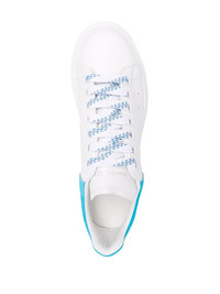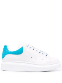 White/blue calf leather Oversized sole sneakers from Alexander McQueen featuring perforated detailing, contrasting branded heel counter, logo-print tongue, front lace-up fastening and oversize rubber sole. Highlights - White/blue - Calf leather - Perforated detailing - Contrasting branded heel counter - Logo-print tongue - Front lace-up fastening - Oversize rubber sole Made in Italy Composition outer: Leather 100% sole: Rubber 100% lining: Leather 100% Product measurements for size: 37 (IT) Heel: 4.5 cm (1.8 in)