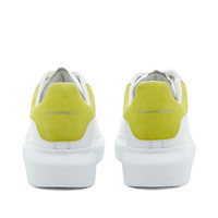 A British fashion house that has been creating avant-garde apparel since the early 90s, Alexander McQueen not only specialises in statement clothing but dramatic footwear with a gothic flare. The heel tab wedge sole sneaker brings the drama that the brand is renowned for. The all over white sneaker features a standard sneaker upper sat atop a thick rubber sole. The contrasting neon lime heel tab adds a unique stamp to the shoe and the brand’s logo is printed on the back of this heel. - Calfskin Leather Upper - Perforated Sidewalls - Rubber Outsole - Printed Branding
