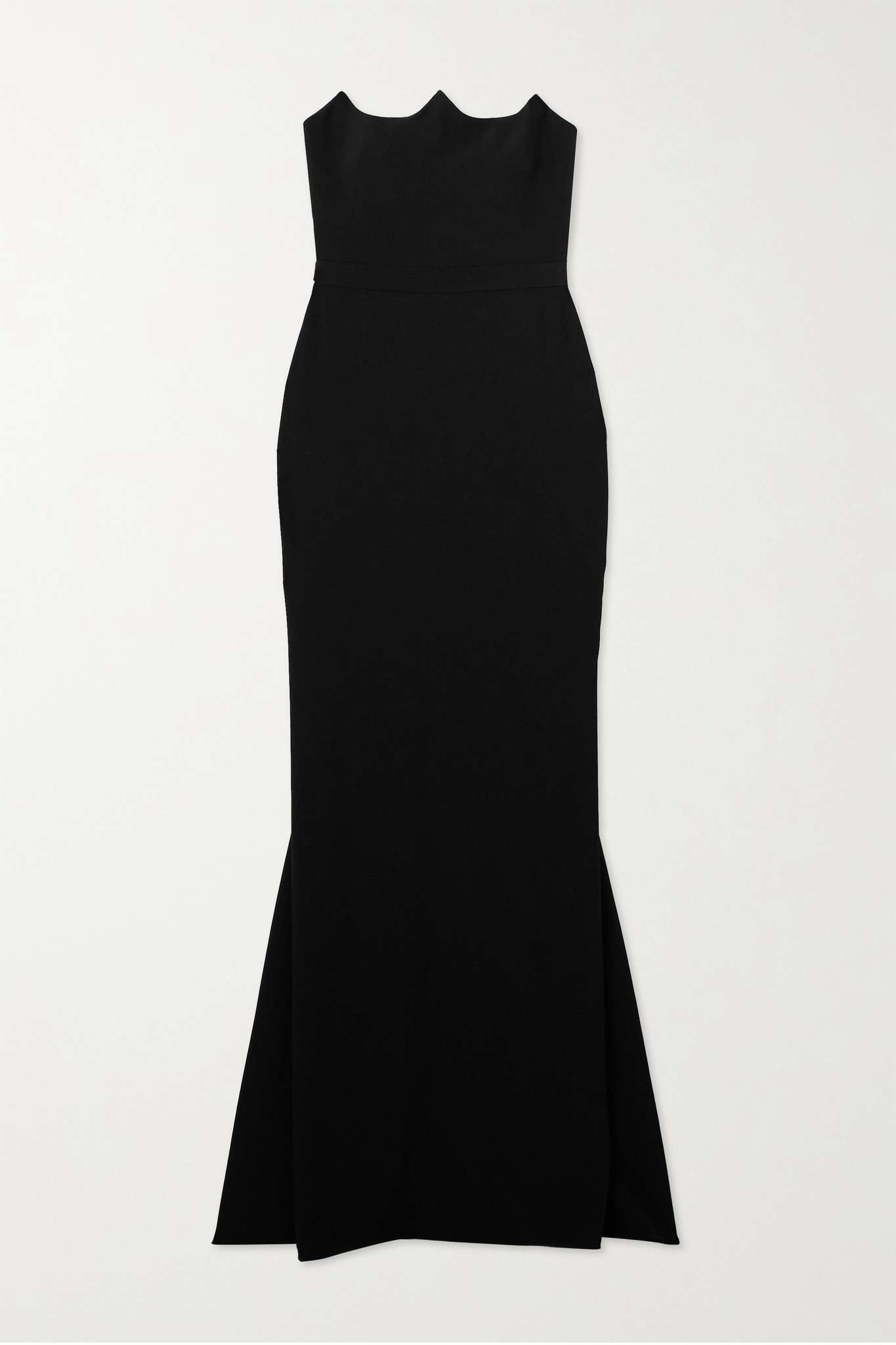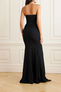 EDITORS'NOTES Alexander McQueen's exquisite gown is the embodiment of modern elegance. Cut from black crepe, it fits very close through the bodice and hips before flaring out to a floor-sweeping hem. Complement the reverse sweetheart neckline with an oversized earring from the Fall '23 collection - it's how Naomi Campbell wore it to open the show in Paris. SIZE & FIT - Fits large to size, take one size smaller than normal - Cut for a very close fit - Internal bodice for support - Mid-weight, non-stretchy fabric - Model is 177cm/ 5'10" and is wearing an IT 38 DETAILS & CARE - Black crepe - Concealed hook and zip fastening at back - 52% viscose, 48% acetate - Dry clean Large to size. See Size & Fit notes.