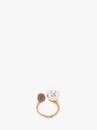 Antique gold-finished ring with a natural white Swarovski pearl-like and a pave Swarovski crystal skull. Brass hardware Material:100% Brass Product Code:651257J160Z4040