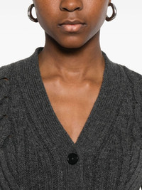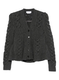 peplum-hem cable-knit cardigan Highlights - Dark grey - Cable knit - Front button fastening - V-neck - Long sleeves - Peplum hem Made in Italy Composition Wool 90%, Cashmere 10% SIZE & FIT Model measurements Height 5 ft 8 in(1.73 m) Bust/Chest 29.92 in(76 cm) Hips 33.07 in(84 cm) Waist 23.22 in(59 cm) Washing instructions Read Manufacturer Guidelines