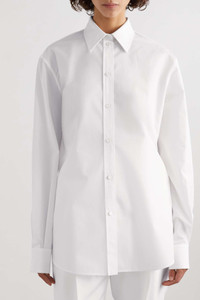 EDITORS'NOTES Nothing compares to a classic button-down shirt when it comes to wearability and styling. This one by Alexander McQueen is tailored for a loose fit from crisp cotton-poplin and has a piqué collar. SIZE & FIT - Fits large to size, take one size smaller than normal - Intended for a loose fit - Mid-weight, non-stretchy fabric - Model is 180cm/ 5’11” and is wearing an IT 38 DETAILS & CARE - White cotton-poplin and piqué - Button fastenings through front - 100% cotton - Dry clean