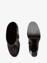 Platform ankle boot in black leather featuring a round toe. Detailed with a side zip fastening and a block leather heel. Material: 100% Calf leather - Heel height: 135mm