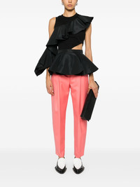 pleat-detail trousers Alexander McQueen steers tailoring in a brighter and bolder direction with these coral pink trousers constructed with a tapered silhouette and feature pleat detailing to the front. Highlights - Coral pink - Wool - Twill weave - Pleat detailing - High-waisted - Belt loops - Concealed front button, hook and zip fastening - Two side slit pockets - Rear button-fastening pocket - Tapered leg - Tailored cut Made In Italy Composition Outer: Wool 100% Lining: Cupro 100% SIZE & FIT Model measurements Height 5 ft 9 in(1.76 m) Bust/Chest 31.88 in(81 cm) Hips 35.43 in(90 cm) Waist 24.8 in(63 cm) FittingInformation Designed for a tapered fit, these trousers allow for a close fit at the waist and a loose unrestricted fit over the leg with a closer fit towards the ankle Made from a midweight non-stretch fabric This piece fits true to size – take your usual size Washing instructions Dry Clean Only