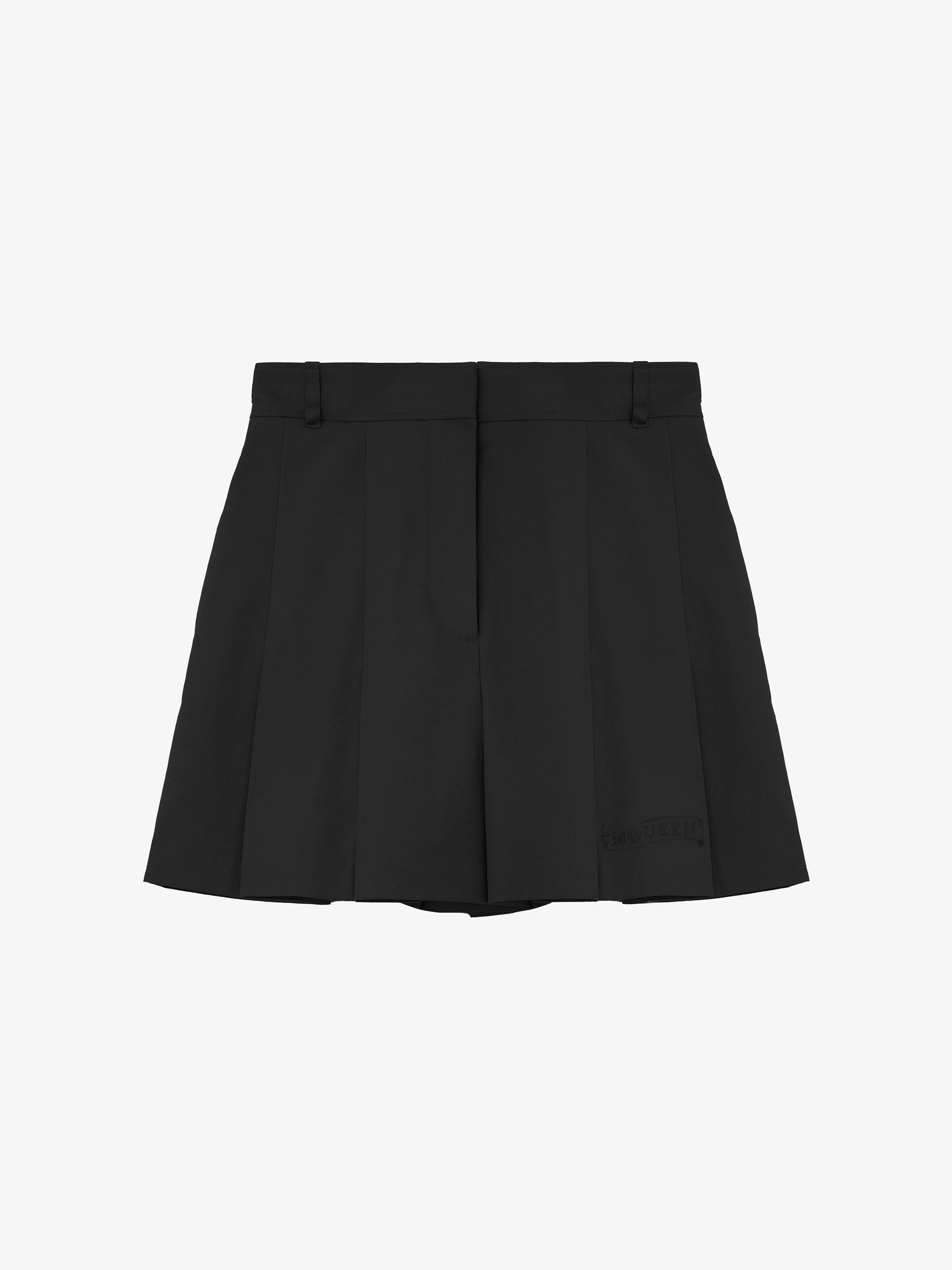 Pleated shorts in black wool mohair. High waist with belt loops. Finished with a concealed zip and hook fastening. Product details - High waist - Belt loops - Concealed zip and hook fastening - Contains certified wool yarn - Product code: 832559QJAEK1000 - Made in Italy - Material: 75% Wool, 25% Mohair