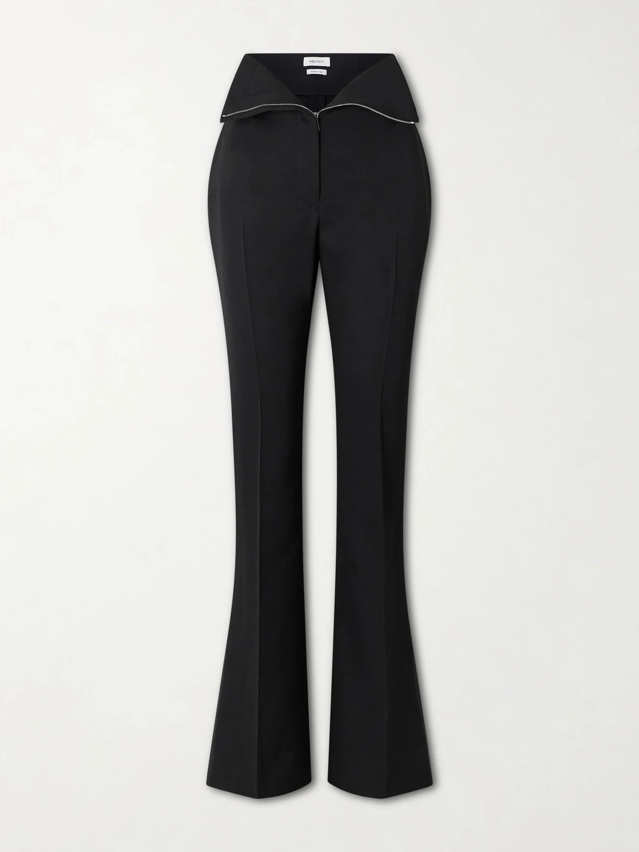 Tailoring has been a key cornerstone of the McQueen brand since its foundation, but always with a directional, slightly subversive twist. Continuing the theme, these pants are cut from smooth wool-twill in a flared shape with a super high zipped waist that folds down.