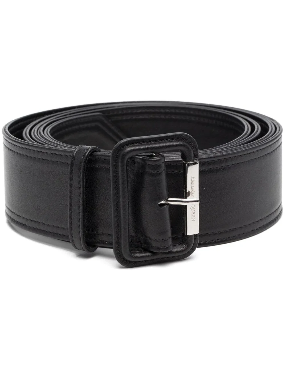 pointed leather buckle belt pointed leather buckle belt from Alexander McQueen featuring black, leather, silver-tone logo plaque, tonal stitching, buckle fastening, pointed tip and adjustable fit. Made in Italy Composition Leather 100% SIZE & FIT Measurement Maximum Length 31.49 in(80 cm) Minimum Length 25.59 in(65 cm) WIDTH 1.96 in(5 cm)