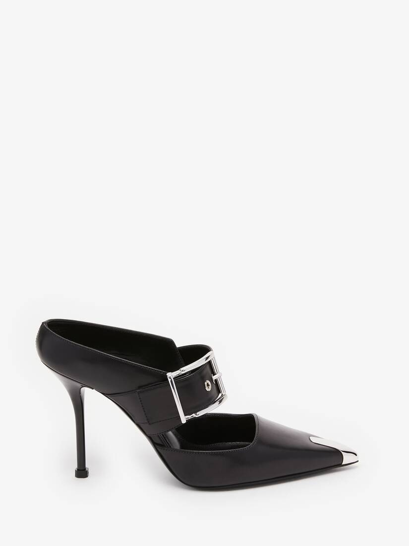 Punk Buckle Mule in Black/silver