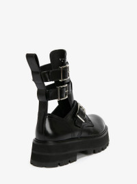 Rave Buckle Boot in black shiny leather featuring two ankle straps with silver-finished buckles and chunky rubber sole. Boot silhouette with a round toe shape. Heel height 55mm. Material:100% Calf Leather Product Code:700078WIC631081