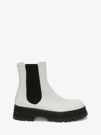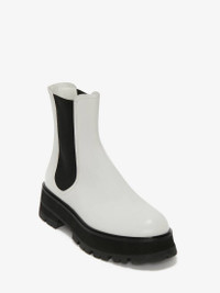 Shiny ivory spazzolato leather Chelsea boot with contrasting elasticated panels and a chunky rubber sole. Boot silhouette with a round toe shape. Heel height 55mm. Material: 100% Calf Leather
