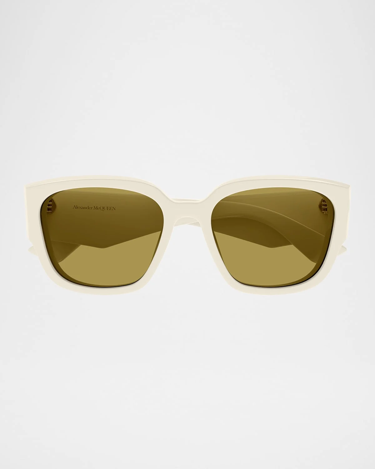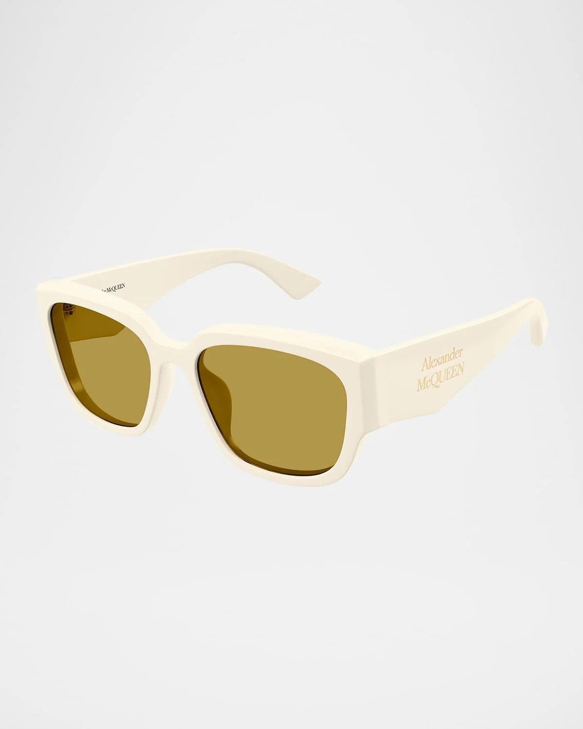 - McQueen rectangle acetate sunglasses - Eye/bridge/temple (in mm): 55-18-140 - Lasered McQueen signature on both sides - 100% UVA/UVB protection - Solid lenses - Made in Italy - Proposition 65 warning for California residents