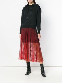 regular hoodie Who can twist and turn a garment, turning it into a high fashion masterpiece? Take this black cotton and lambskin blend regular hoodie from Alexander McQueen, featuring a drawstring hood, dropped shoulders, a ribbed hem and cuffs and an embroidered design on the hood. Made in Italy Composition Cotton 100%, Lamb Skin 100% SIZE & FIT Model measurements Height 5 ft 10 in(1.78 m) Bust/Chest 34.25 in(87 cm) Hips 35.03 in(89 cm) Waist 26.37 in(67 cm) Washing instructions Machine Wash