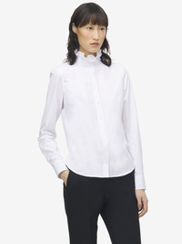 Shirt in optical white cotton poplin. Stand collar with tonal ruffle detailing. Finished with a front button fastening. Product details - Mandarin collar with ruffle detailing - Front button fastening - Product code: 848944QAABT9000 - Made in ITALY - Material: 100% Cotton
