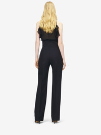 Sleeveless top in black silk georgette with tonal ruffle detailing. High neck with button fastening and cut-out. Product details - High neck with button fastening - Product code: 846784QBADS1000 - Made in ITALY - Material: 100% Silk