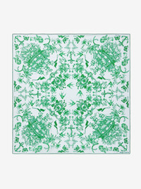 Blue and dark green silk twill foulard featuring a symmetrical sailor tattoo print. The foulard is finished with rolled edges and the McQueen logo in the bottom right corner. Product details - Dimensions: 90 x 90 cm / 35.4 x 35.4 inches - Product code: 8357313001Q4966 - Made in Italy - Material: 100% Silk