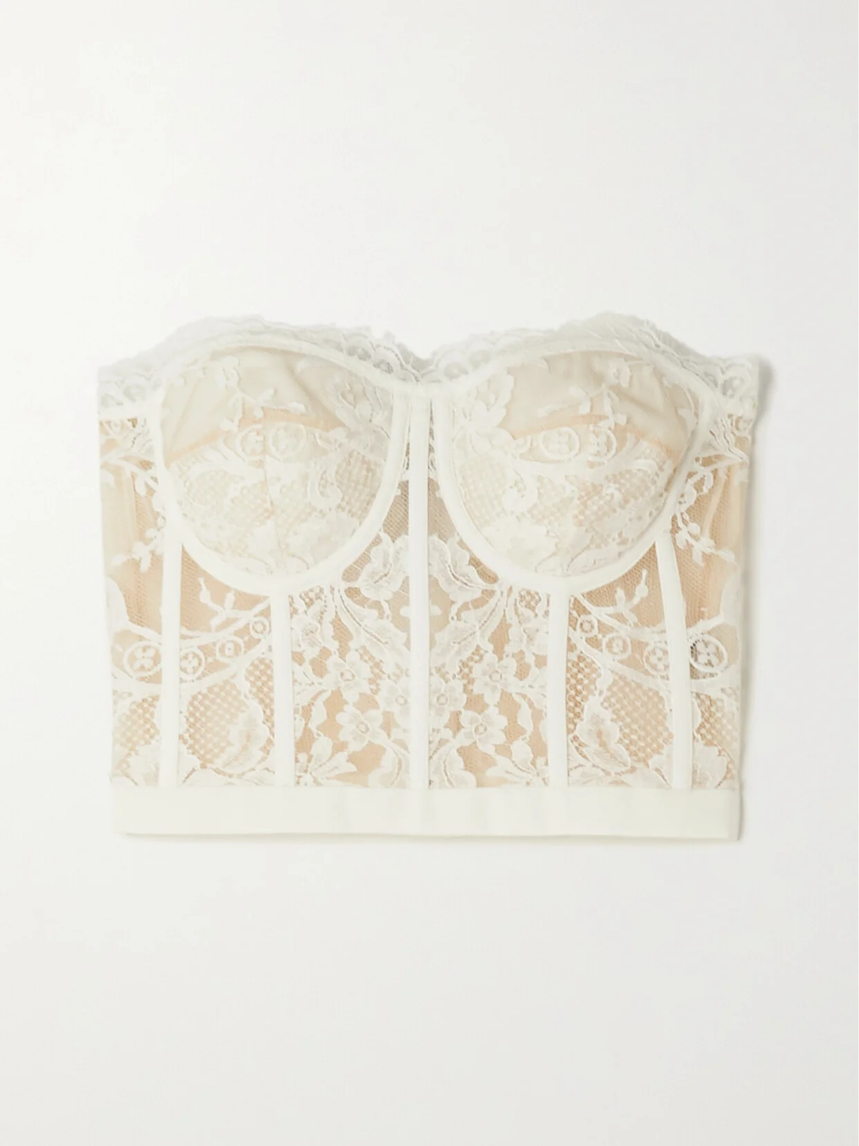 Satin-trimmed Cotton-blend Corded Lace Bustier Top