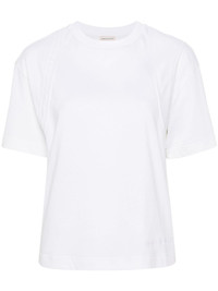 seam-detailed T-shirt Included in the new SS22 collection, this Alexander McQueen T-shirt showcases a minimal take on casual wear. Boasting a classic design, this piece is decorated with seam detailing on the front and back. Highlights - Daisy white - Cotton - Jersey texture - Exposed-seam detailing - Embroidered logo - Round neck - Drop shoulder - Short sleeves - Straight hem Made in Italy Composition Cotton 100%, Polyester 100% SIZE & FIT Model measurements Height 5 ft 9 in(1.76 m) Bust/Chest 31.88 in(81 cm) Hips 35.43 in(90 cm) Waist 24.8 in(63 cm) FittingInformation Designed for a relaxed fit, this piece allows for comfort and movement when worn Made from a midweight non-stretch fabric, this piece offers minimal elasticity when worn This piece fits true to size – take your usual size Washing instructions Machine Wash